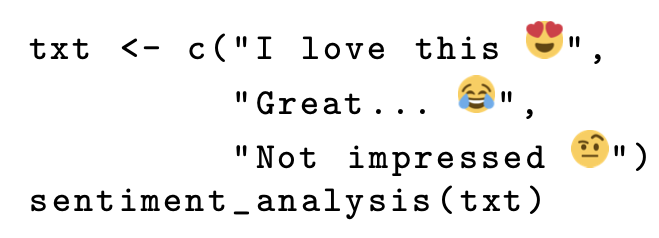 Rudis, B., & Robinson, D. (2024). emoji: Data and functions to work with emojis [Computer software manual]. Retrieved from https://cran.r-project.org/package=emoji (R package version 0.2.0)